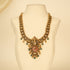 A 925 silver Kundan Haram features Kundan stones set in a base of 925 sterling silver. The necklace showcases the intricate craftsmanship of Kundan, with colorful stones arranged in a traditional, regal pattern. This elegant piece combines the timeless beauty of Kundan with the durability and shine of sterling silver, making it a perfect choice for special occasions like weddings and festivals