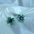 These earrings feature a vibrant green leaf design, a captivating violet stone in the center, and delicate golden prickle accents. They are the perfect blend of style and affordability