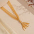 Golden mesh chain jewelry showcases a series of interwoven silver links, creating a flexible and intricate design. Its versatility and elegance make it perfect for various styles and occasions