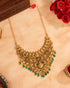 This Kanaka Maala necklace in 925 silver is luxuriously plated in gold, showcasing intricate craftsmanship and a bold design. It offers a rich, regal look perfect for grand occasions and traditional celebrations